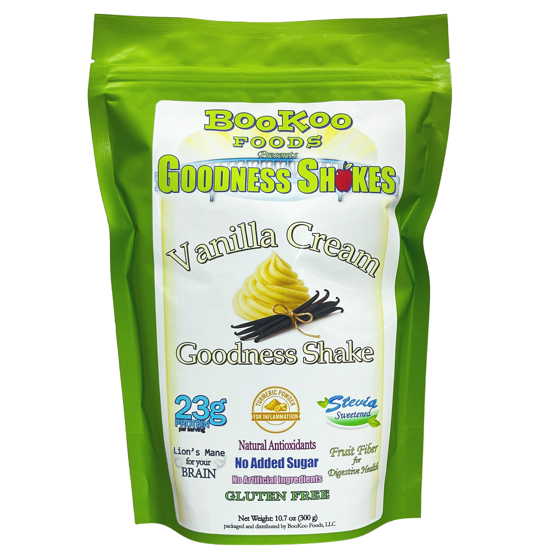 Say hello to our smoothest scoop yet. Vanilla Cream Goodness Shake is here! Packed with 23g of whey protein, gut loving apple fiber, and brain boosting lion’s mane, it’s the perfect blend of real-food fuel and creamy, crave worthy flavor.